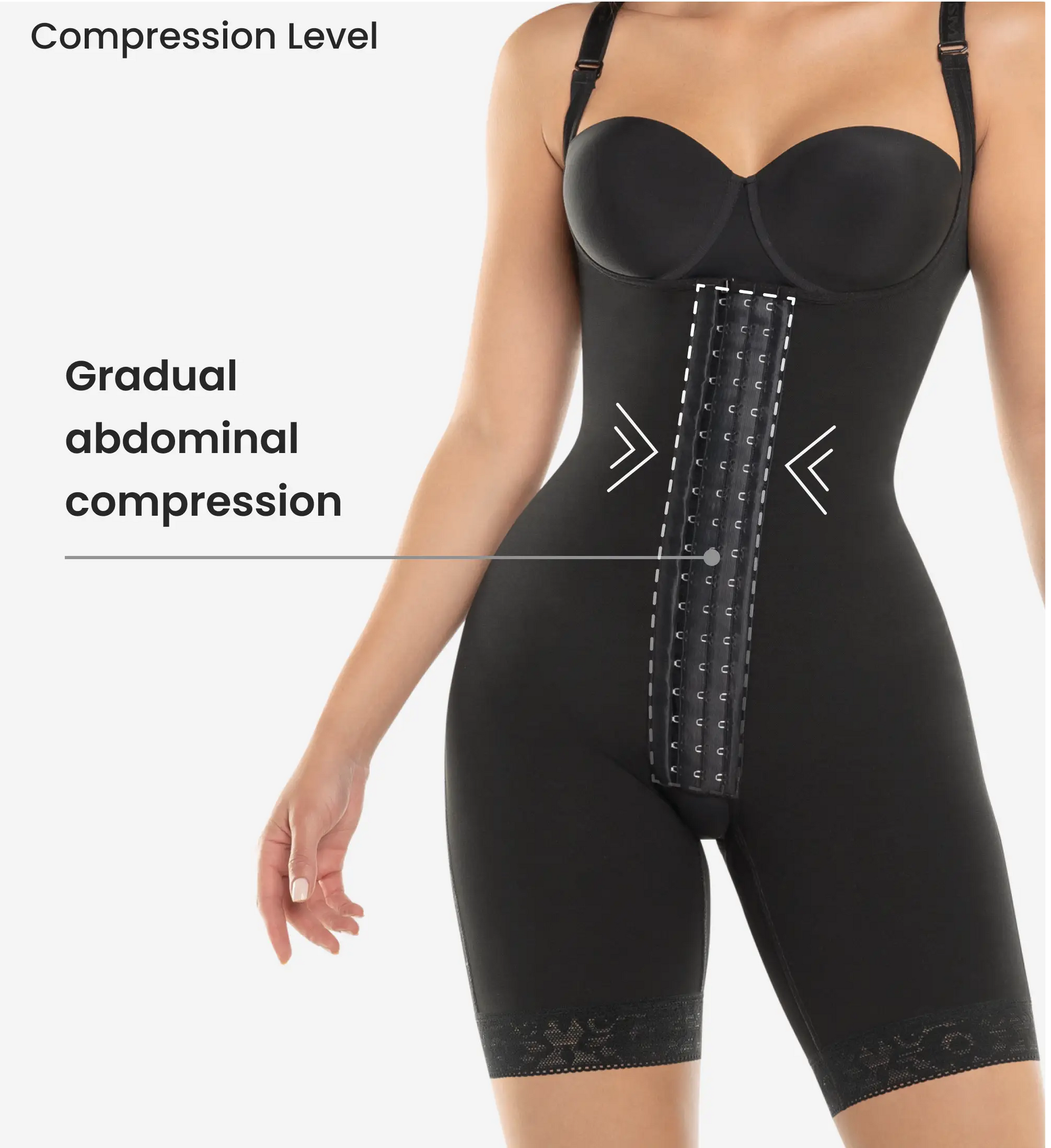 Embrace your best self with our Firm Control Bodysuit with Butt-Lift. It gently defines your waist, flattens the abdomen, and lifts both your butt and breasts while improving posture and shaping your legs and hips. Made with premium materials and BIO therapy, it offers comfort with antibacterial properties and a silky inner lining. The mid-thigh design, and adjustable straps ensure a perfect fit. Ideal for daily wear or recovery, this bodysuit supports you with a smoother recovery and a beautifully contoured figure.